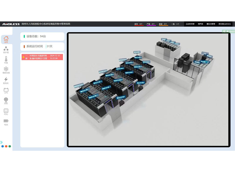 用戶介紹:       該檢察院為江蘇省揚州市境內(nèi)的司法機關(guān)。 解決方案:      近期有幸為江蘇省某市檢察院提供三套安德力士品牌微模塊機房設(shè)備,涉及系統(tǒng)有:UPS不間斷電源、精密空調(diào)、機柜、配電、動力環(huán)境監(jiān)控等系統(tǒng);涉及主要設(shè)備有:UPS主機(30KVA、40KVA、300KVA)、鉛酸蓄電池(100AH64節(jié)、200AH128節(jié)、250AH320節(jié))、精密空調(diào)(行級25KW12臺、基站12.5KW4臺)、機柜51套,現(xiàn)已全部安裝調(diào)試完成。      微模塊數(shù)據(jù)中心的主要優(yōu)勢      1、快速部署、縮短建設(shè)周期      微模塊數(shù)據(jù)中心加快規(guī)劃與設(shè)計速度,可根據(jù)設(shè)計目標(biāo)以合理的方式配置系統(tǒng)結(jié)構(gòu),微模塊批量生產(chǎn)可以實現(xiàn)現(xiàn)貨供應(yīng),因而提高了交貨速度;標(biāo)準(zhǔn)化的連接方式可減少現(xiàn)場配置與連接的工作量,加快安裝速度;微模塊數(shù)據(jù)中心建設(shè)周期可大大縮短,傳統(tǒng)數(shù)據(jù)中心實施階段需要7-8月,采用微模塊建設(shè)縮短至2-3個月。      2、方便擴展、分期建設(shè)      采用微模塊的架構(gòu),數(shù)據(jù)中心可以逐步增加,因而可使從1個微模塊到幾十個微模塊根據(jù)需求分期建設(shè)。微模塊數(shù)據(jù)中心方案顯著降低了數(shù)據(jù)中心在使用壽命期間的成本。      3、標(biāo)準(zhǔn)模塊、穩(wěn)定可靠      微模塊數(shù)據(jù)中心采用模塊化、標(biāo)準(zhǔn)化和高整合設(shè)計,使得整個系統(tǒng)穩(wěn)定度高。同時,微模塊數(shù)據(jù)中心可依據(jù)客戶需求,在電力備援方案上提供N、N+1、2N等配置方案。      4、綠色、節(jié)能          數(shù)據(jù)中心在使用壽命期間的電力成本是TC(總擁有成本)中的一項。相比傳統(tǒng)機房,微模塊數(shù)據(jù)中心制冷效率提升。微模塊數(shù)據(jù)中心結(jié)合水冷系統(tǒng)、自然冷卻系統(tǒng),PUE降低。      5、智能管理、高效運營      智能的管理系統(tǒng)能夠幫助客戶節(jié)能降耗,實現(xiàn)數(shù)據(jù)機房多層級、精細化能耗管理,通過多種報表精確定位能源額外損耗點。基于大數(shù)據(jù)分析,輸出節(jié)能優(yōu)化方案,構(gòu)建綠色數(shù)據(jù)機房。資產(chǎn)管理是對于全網(wǎng)資產(chǎn)的生命周期進行管理實現(xiàn)資產(chǎn)信息的閉環(huán)管理,保證數(shù)據(jù)及時刷新,及時管理。同時幫助用戶制定資產(chǎn)維護計劃,在維護計劃內(nèi)幫助客戶實現(xiàn)主動預(yù)警,同時可動態(tài)調(diào)整維護計劃,按照當(dāng)前實際情況輸出優(yōu)化方案,構(gòu)建資產(chǎn)管理功能。